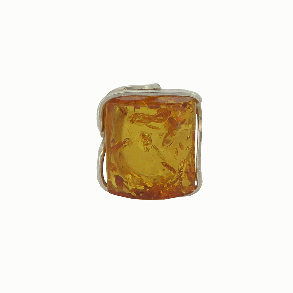 Anello in ambra del Baltico colore miele montata su argento 925.